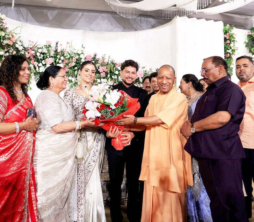 सीएम योगी पहुंचे कुलदीप यादव के प्रीतिभोज में, नवदंपति को दिया आशीर्वाद